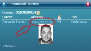 Wanneer een patiënt u belt verschijnt een pop-up rechtsonder in uw scherm. Zo ziet u meteen wie u belt en wanneer de patiënt een afspraak heeft.